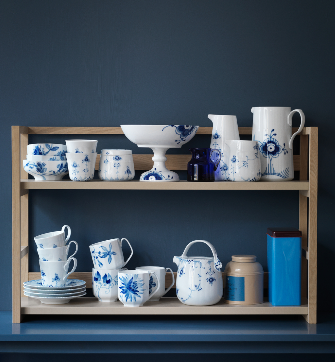 В XVIII век роспись синим в керамике достигла своего пика. В то время европейские фарфоровые заводы в поисках вдохновения обращались на Восток, в Китай, чьи традиции росписи фарфора имели глубокие корни. Франц Генрих Мюллер, основатель компании Royal Copenhagen, которая тогда называлась Королевским фарфоровым заводом, не был исключением. Он привез в Данию стилизованный мотив хризантем, где его усовершенствовали, превратив в ультрамариновый узор, который мы видим сегодня на изделиях Royal Copenhagen из коллекции Blue Fluted Plain.