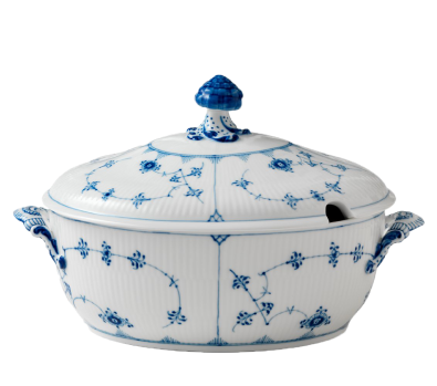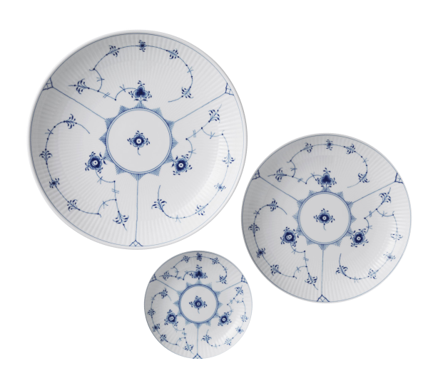 BLUE FLUTED PLAIN - название, которое также известно, как узор «mussel» - мидия, и хотя многие старинные легенды и и объясняют значение этого названия, никто точно не знает истинное послание. Некоторые утверждают, что название относится к рифленным очертаниям напоминающими форму мидии. Другие же, к примеру, бывший художественный руководитель Арнольд Крог, утверждали, что название происходит от кобальтово-синего цвета, используемого в украшениях с ручной росписью, цвета, также называемого «цвет мидии».
