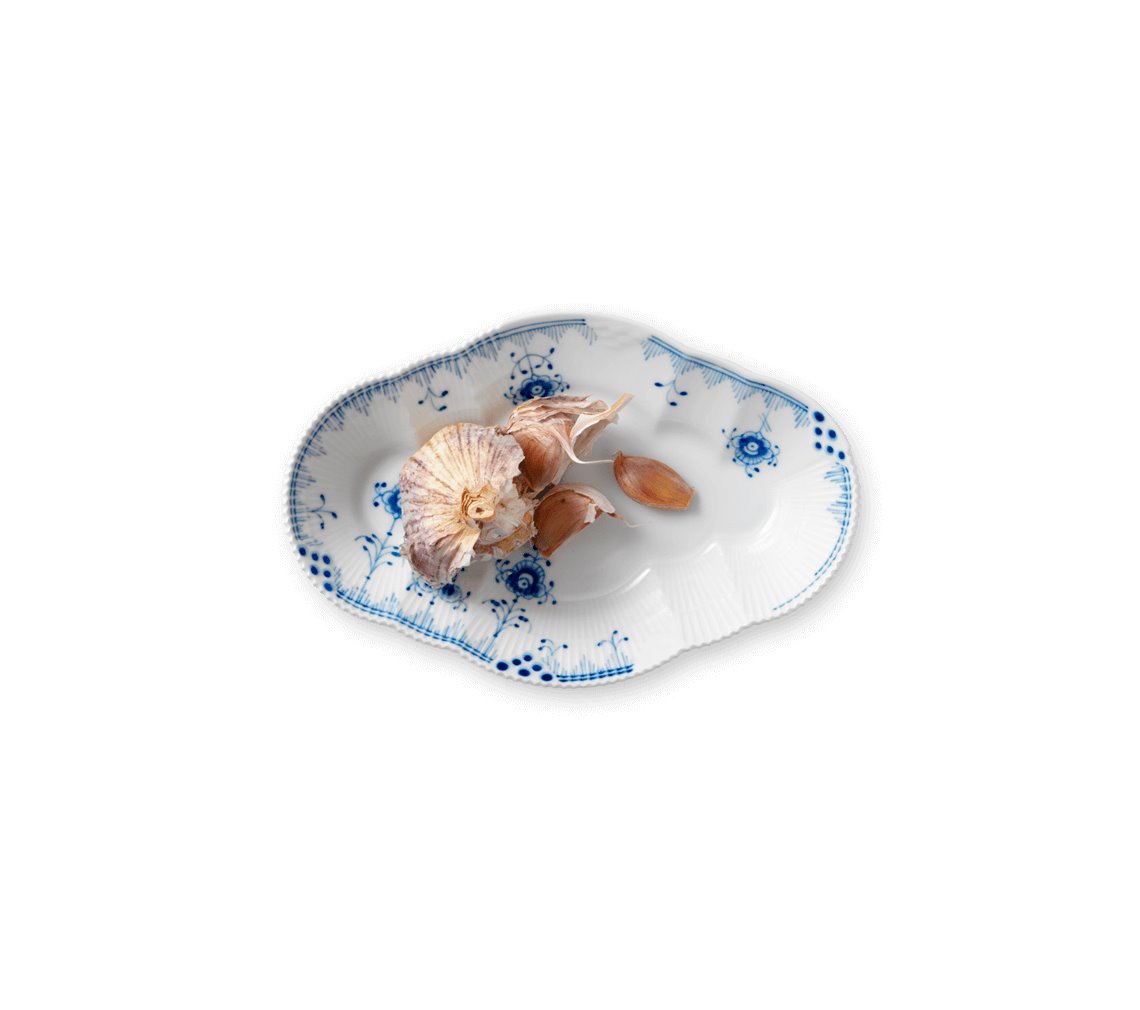 Наличие голубого орнамента еще больше роднит коллекцию со знаменитым домом фарфора, так как именно такая цветовая гамма и рифленые волны были использованы в самом первом сервизе Royal Copenhagen.