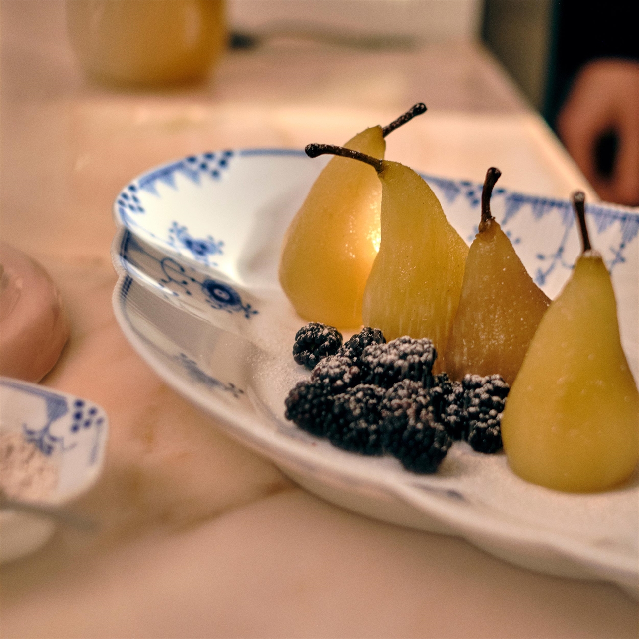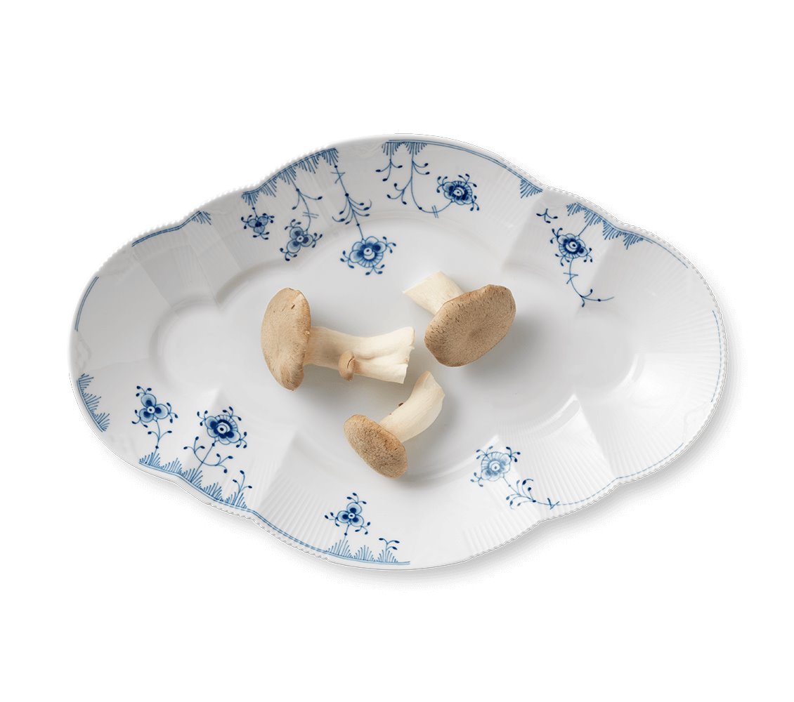 Наличие голубого орнамента еще больше роднит коллекцию со знаменитым домом фарфора, так как именно такая цветовая гамма и рифленые волны были использованы в самом первом сервизе Royal Copenhagen.