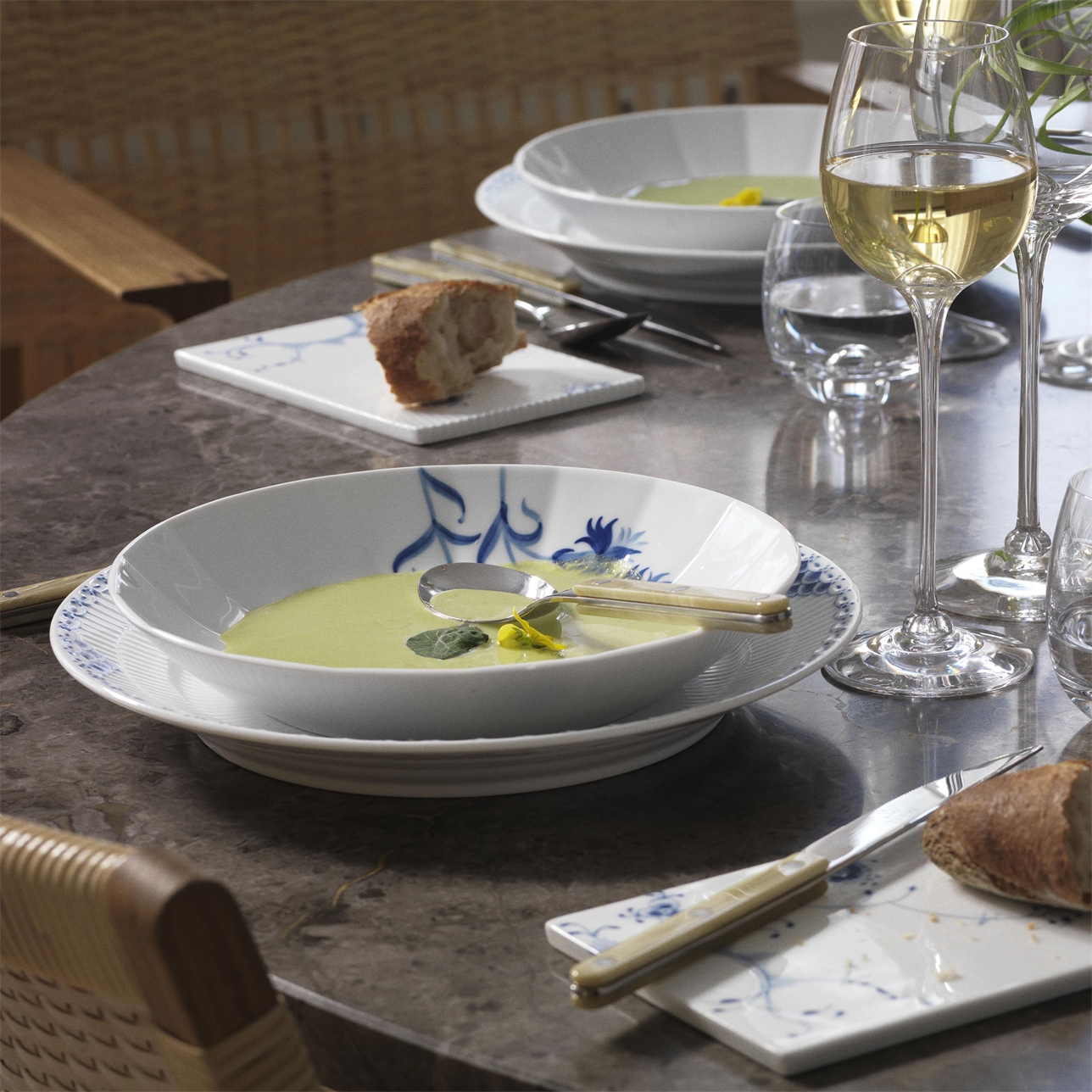 Наличие голубого орнамента еще больше роднит коллекцию со знаменитым домом фарфора, так как именно такая цветовая гамма и рифленые волны были использованы в самом первом сервизе Royal Copenhagen.