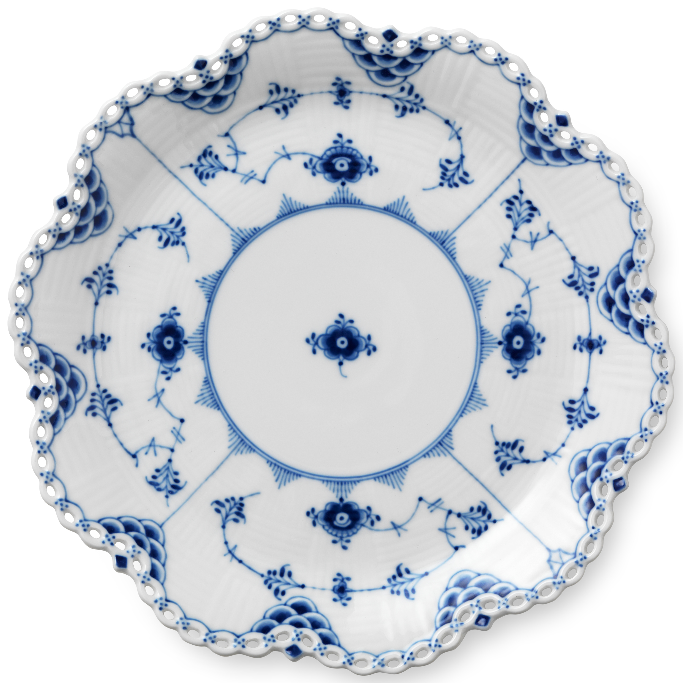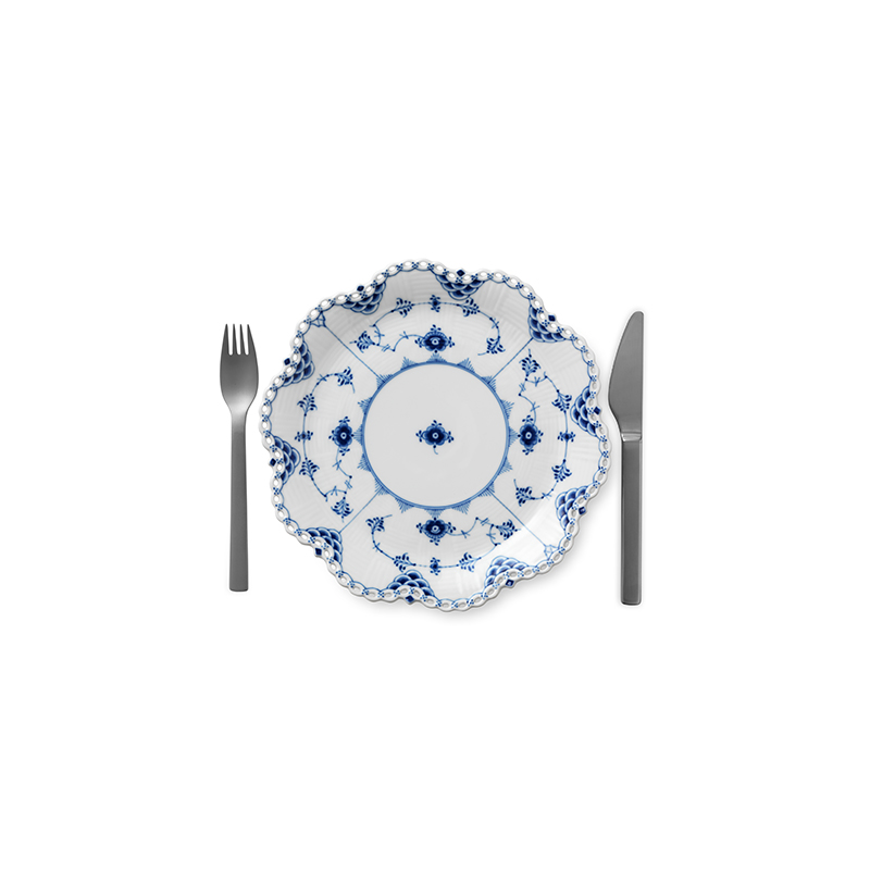 Столовый сервиз из старейшей «рифленой» серии королевского фарфора. Одна из самых первых коллекций мануфактуры, созданная в 1775 году, и спустя 110 лет модернизированная художественным руководителем Арнольдом Крогом. Принципиальные отличия коллекции Blue Fluted Full Lace: