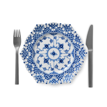 Столовый сервиз из старейшей «рифленой» серии королевского фарфора. Одна из самых первых коллекций мануфактуры, созданная в 1775 году, и спустя 110 лет модернизированная художественным руководителем Арнольдом Крогом. Принципиальные отличия коллекции Blue Fluted Full Lace:
