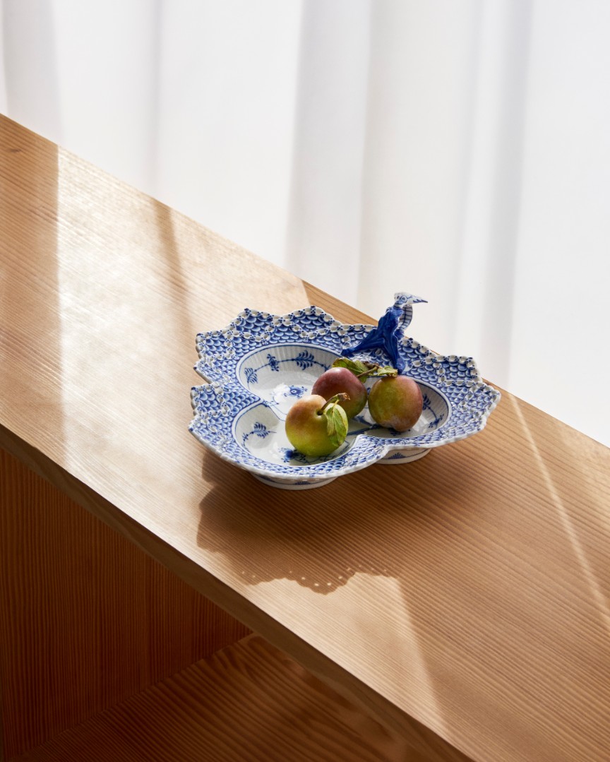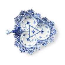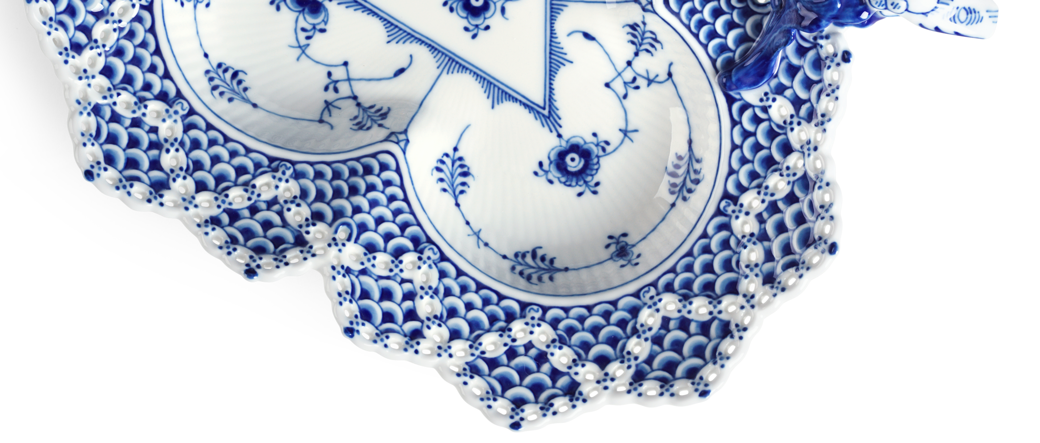 Столовый сервиз из старейшей «рифленой» серии королевского фарфора. Одна из самых первых коллекций мануфактуры, созданная в 1775 году, и спустя 110 лет модернизированная художественным руководителем Арнольдом Крогом. Принципиальные отличия коллекции Blue Fluted Full Lace: