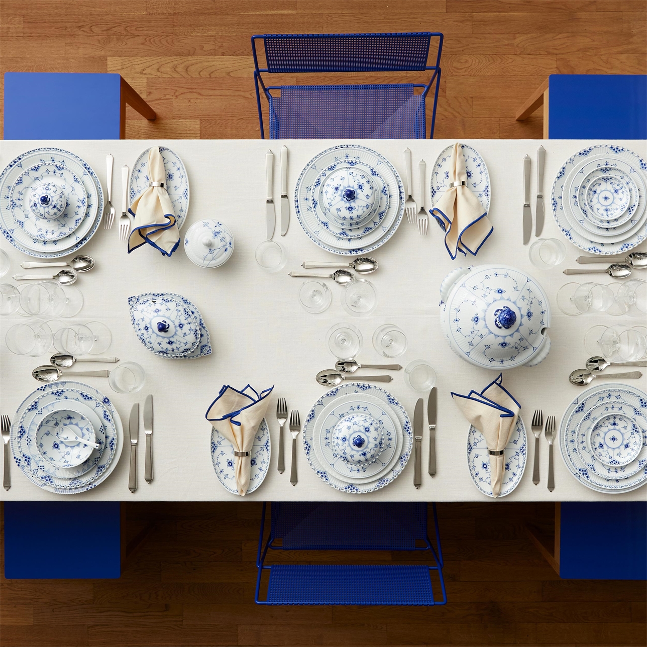 Столовый сервиз из старейшей «рифленой» серии королевского фарфора. Одна из самых первых коллекций мануфактуры, созданная в 1775 году, и спустя 110 лет модернизированная художественным руководителем Арнольдом Крогом. Принципиальные отличия коллекции Blue Fluted Full Lace: