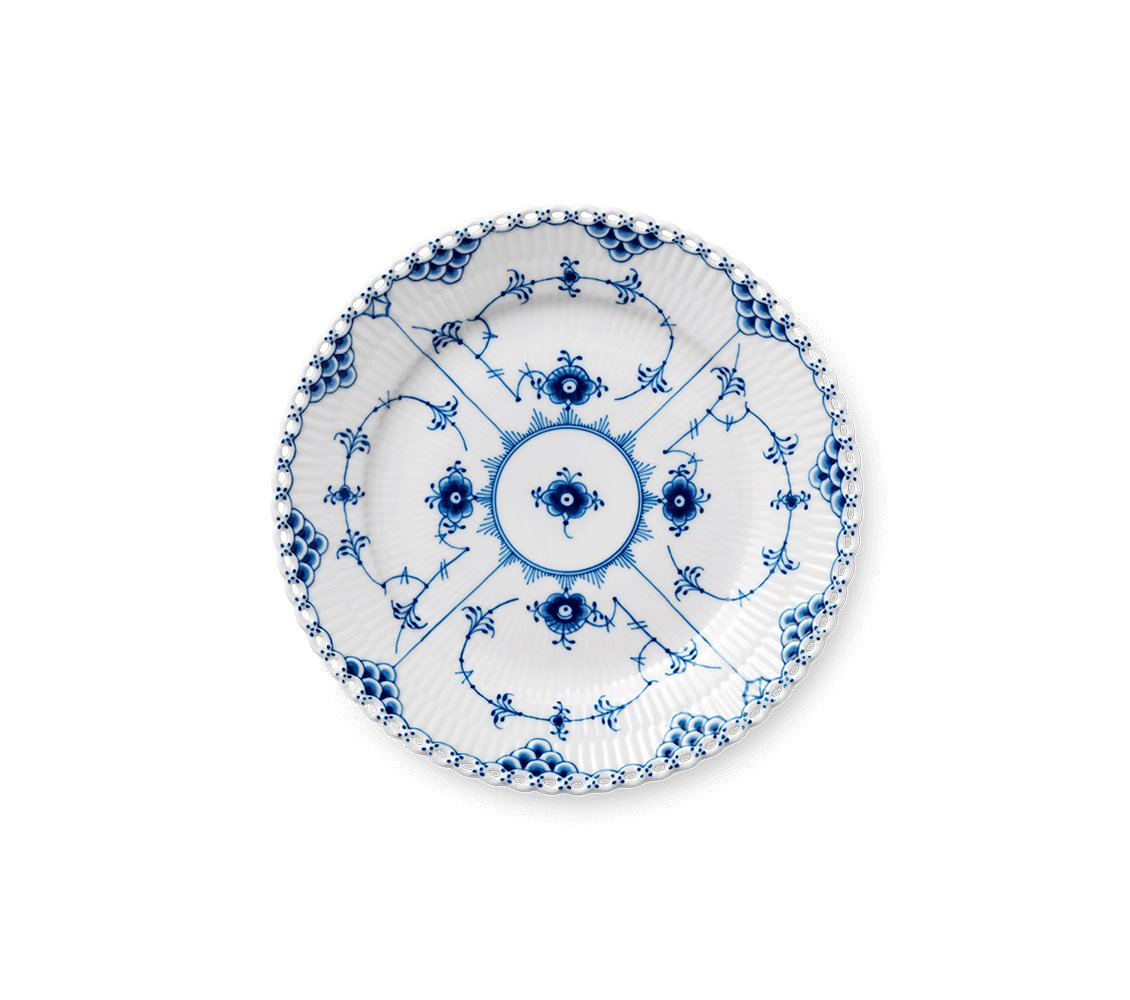 Представляем тарелку Blue Fluted Full Lace от Royal Copenhagen — шедевр фарфорового искусства, сочетающий в себе функциональность и непревзойденную красоту.