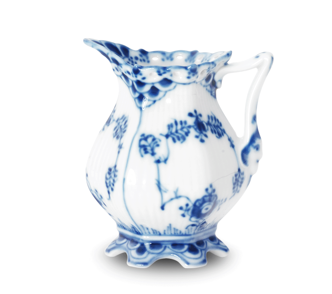 Столовый сервиз из старейшей «рифленой» серии королевского фарфора. Одна из самых первых коллекций мануфактуры, созданная в 1775 году, и спустя 110 лет модернизированная художественным руководителем Арнольдом Крогом. Принципиальные отличия коллекции Blue Fluted Full Lace: