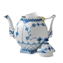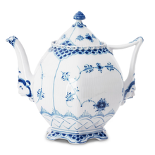 Столовый сервиз из старейшей «рифленой» серии королевского фарфора. Одна из самых первых коллекций мануфактуры, созданная в 1775 году, и спустя 110 лет модернизированная художественным руководителем Арнольдом Крогом. Принципиальные отличия коллекции Blue Fluted Full Lace: