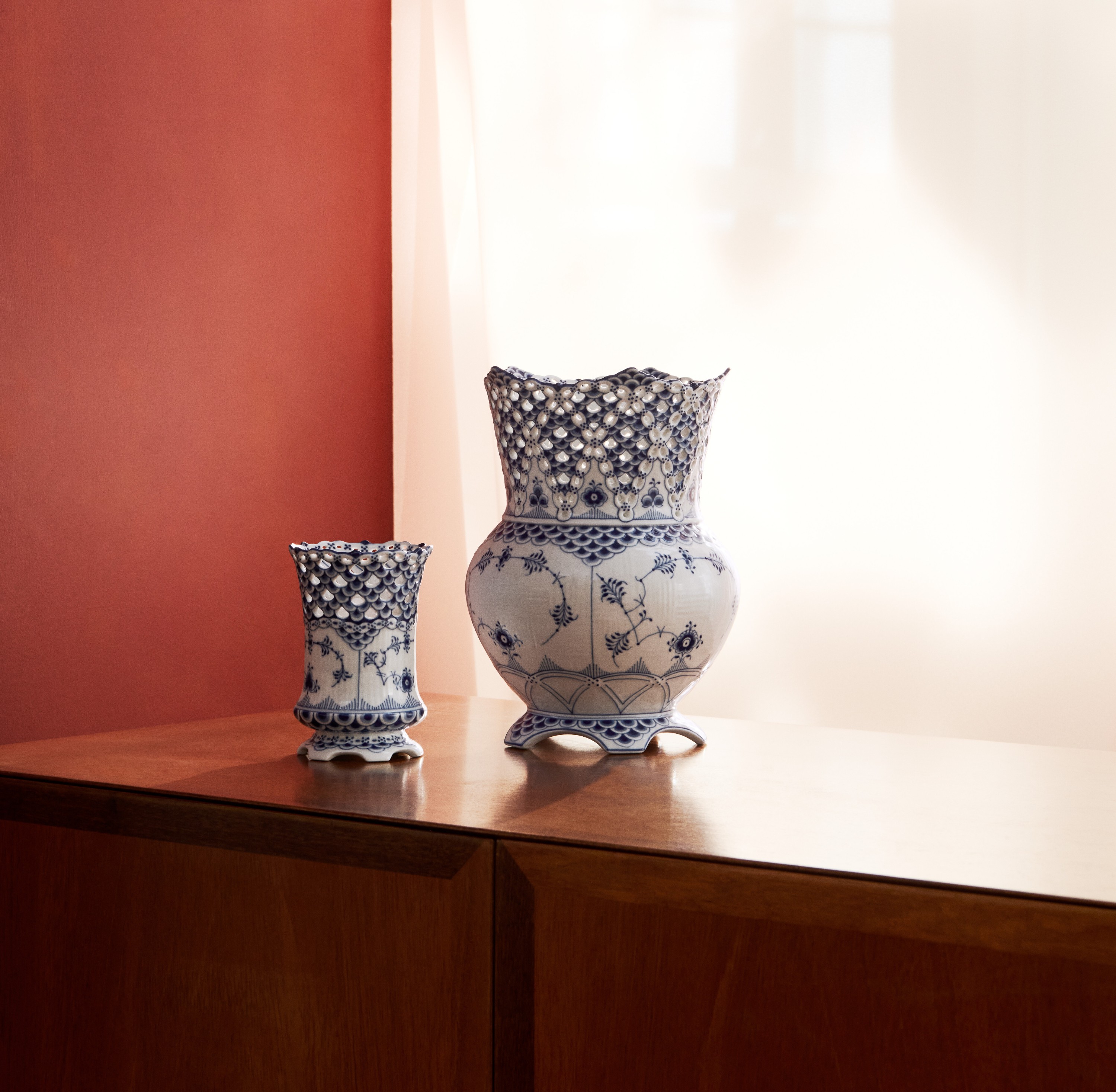 Ваза из коллекции Blue Fluted Full Lace - воссозданное сокровище из архивов Датской Королевской мануфактуры. Каждое отверстие в горлышке вазы мастерски вырезано вручную талантливыми мастерами. Деликатные мазки кисти оживляют это произведение фарфорового искусства.