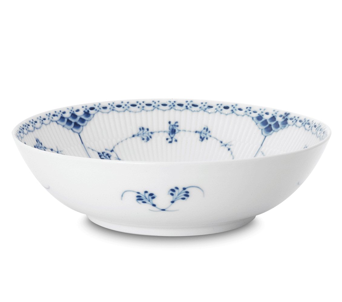 Одна из первых работ художника Арнольда Крога. Лаконичная и одна из самых нарядных «рифленых» серий, богато украшенная голубым орнаментом. Вышла в свет в 1888 году. Как и другие коллекции фарфора Royal Copenhagen конца 18 века, оформлена рисунком под названием «Узор номер 1», наложенным техникой ручной подглазурной росписи.