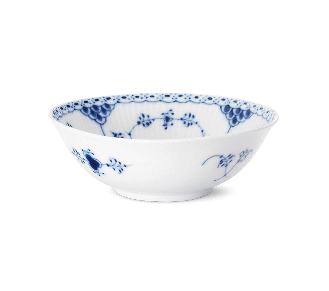 Одна из первых работ художника Арнольда Крога. Лаконичная и одна из самых нарядных «рифленых» серий, богато украшенная голубым орнаментом. Вышла в свет в 1888 году. Как и другие коллекции фарфора Royal Copenhagen конца 18 века, оформлена рисунком под названием «Узор номер 1», наложенным техникой ручной подглазурной росписи.