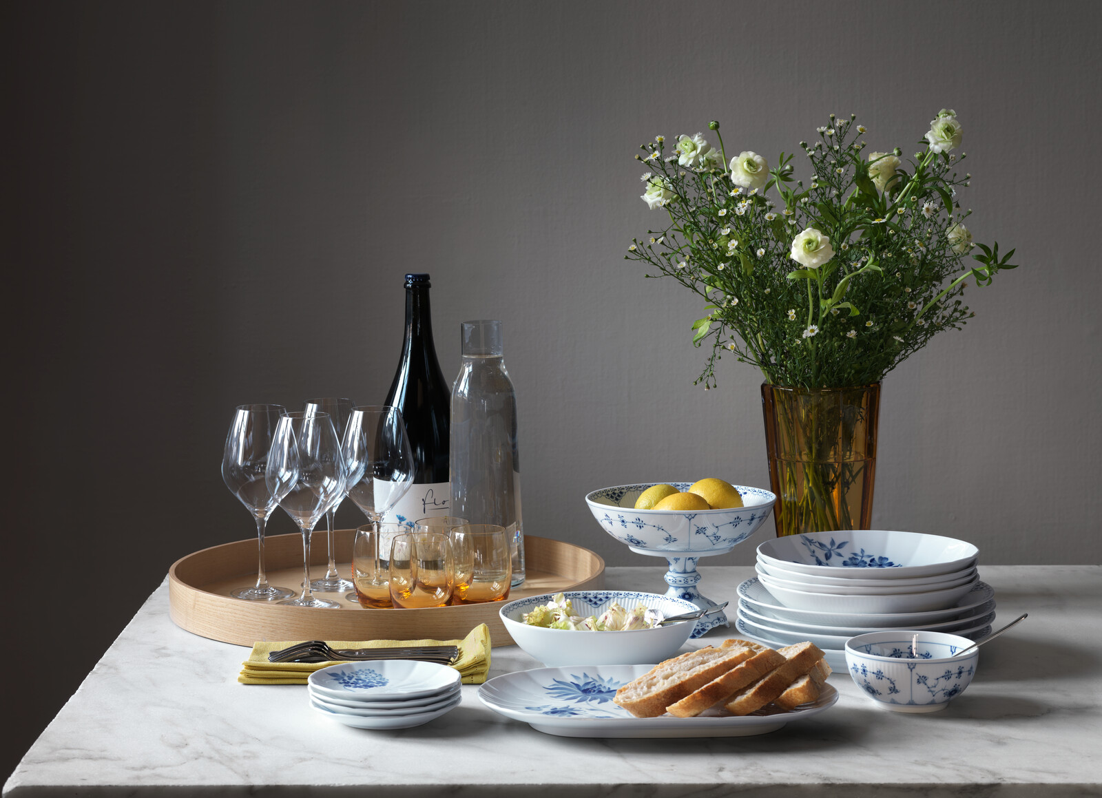 Одна из первых работ художника Арнольда Крога. Лаконичная и одна из самых нарядных «рифленых» серий, богато украшенная голубым орнаментом. Вышла в свет в 1888 году. Как и другие коллекции фарфора Royal Copenhagen конца 18 века, оформлена рисунком под названием «Узор номер 1», наложенным техникой ручной подглазурной росписи.