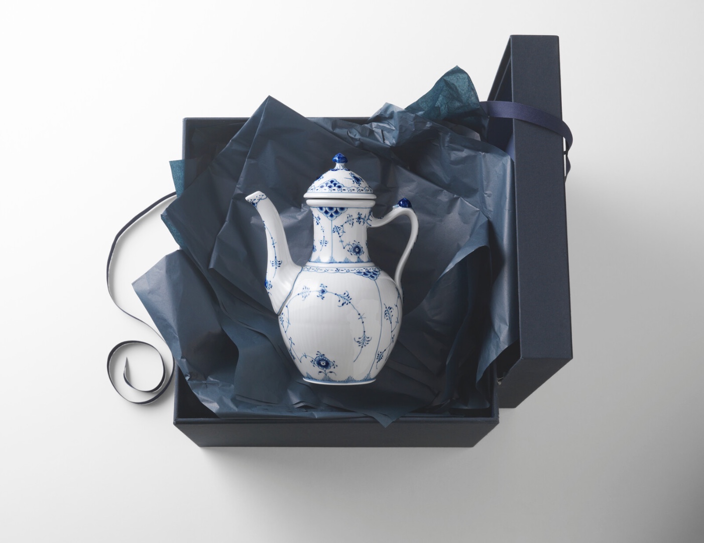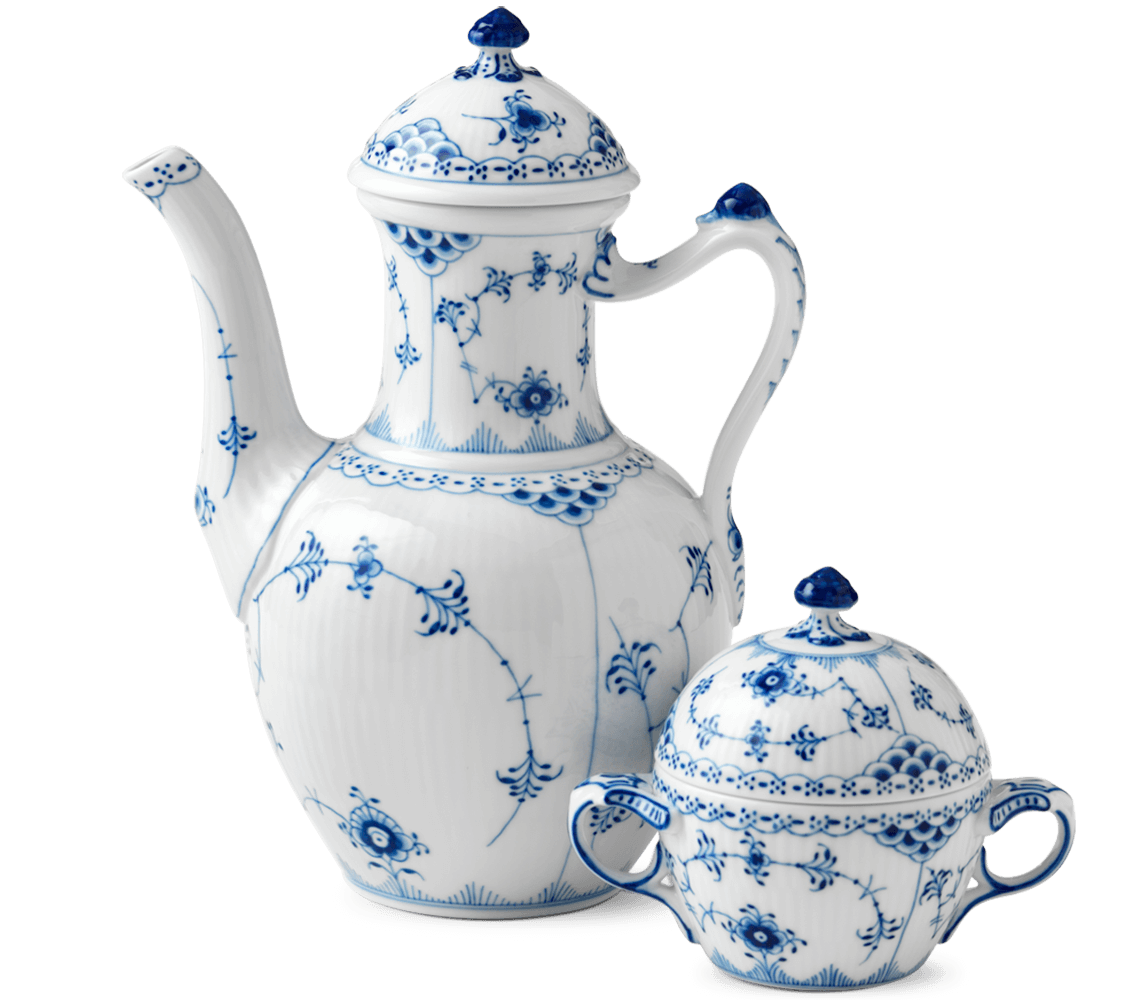 Одна из первых работ художника Арнольда Крога. Лаконичная и одна из самых нарядных «рифленых» серий, богато украшенная голубым орнаментом. Вышла в свет в 1888 году. Как и другие коллекции фарфора Royal Copenhagen конца 18 века, оформлена рисунком под названием «Узор номер 1», наложенным техникой ручной подглазурной росписи.