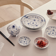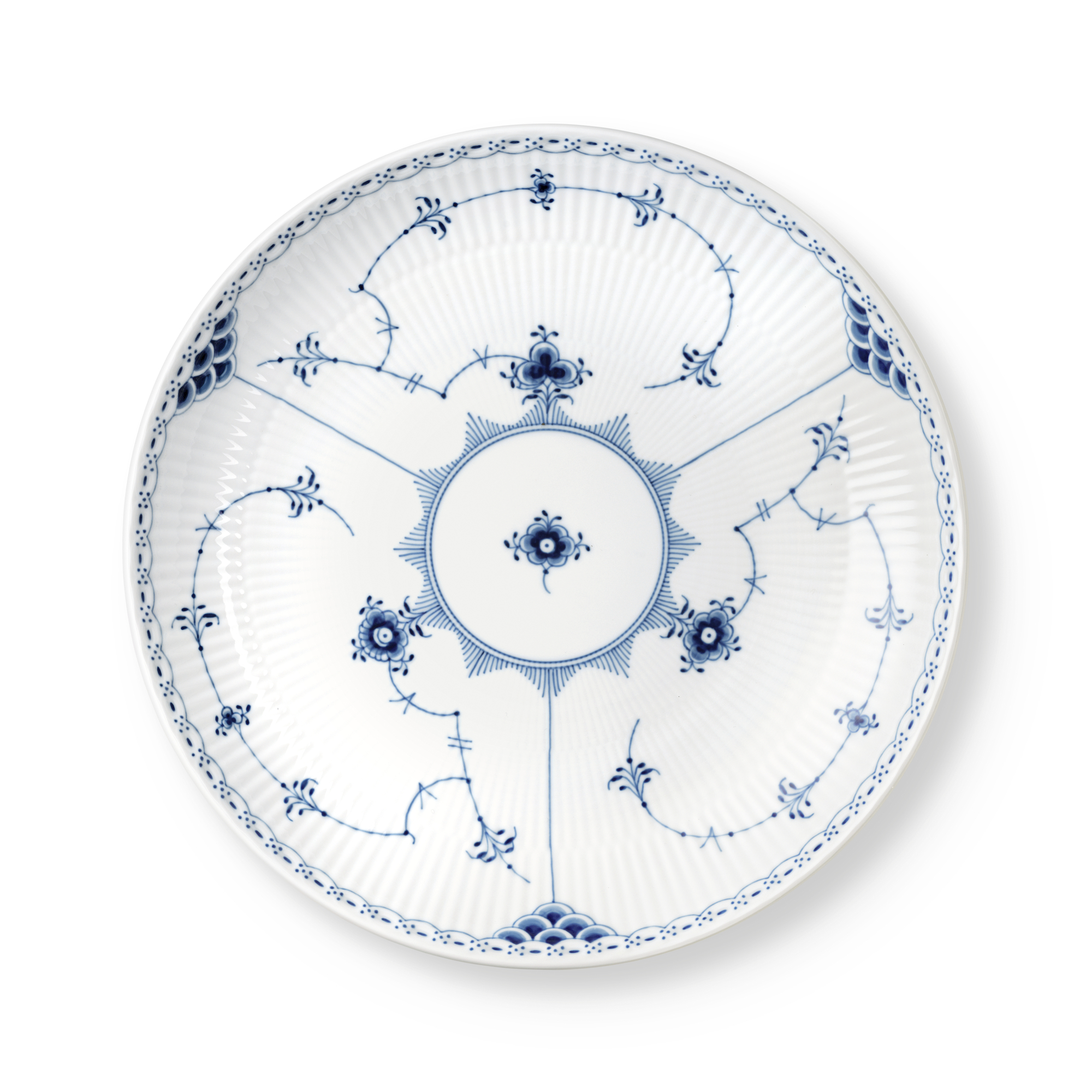 Одна из первых работ художника Арнольда Крога. Лаконичная и одна из самых нарядных «рифленых» серий, богато украшенная голубым орнаментом. Вышла в свет в 1888 году. Как и другие коллекции фарфора Royal Copenhagen конца 18 века, оформлена рисунком под названием «Узор номер 1», наложенным техникой ручной подглазурной росписи.