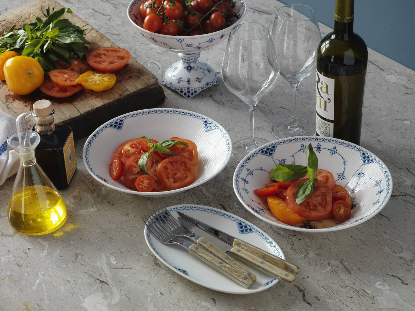 Современная форма глубокой тарелки теперь в коллекции Blue Fluted Half Lace. Эта тарелка универсальна и является элегантным предметом столового сервиза для подачи пасты, салатов или блюд азиатской кухни. Она также отлично подходит для подачи индивидуальных порций.