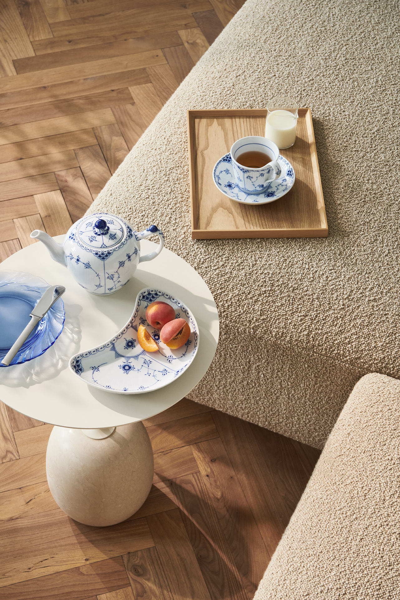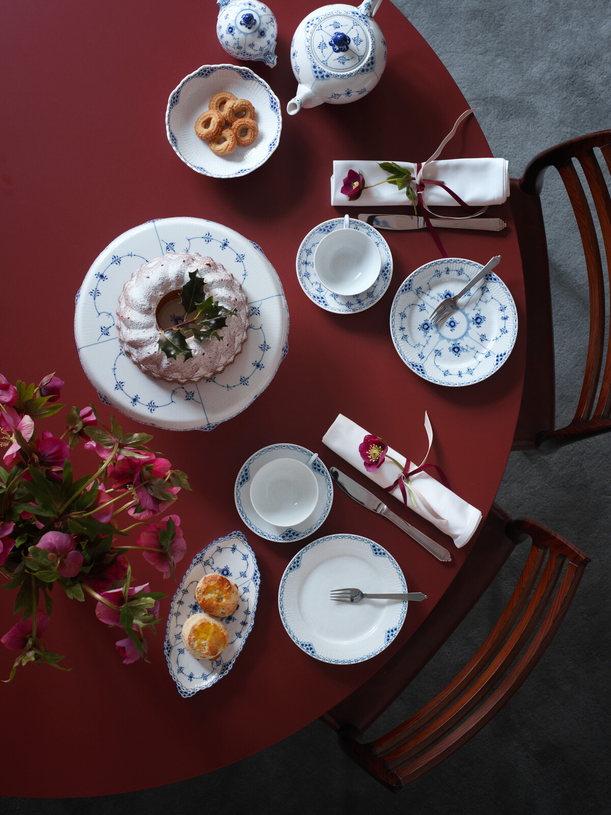 Одна из первых работ художника Арнольда Крога. Лаконичная и одна из самых нарядных «рифленых» серий, богато украшенная голубым орнаментом. Вышла в свет в 1888 году. Как и другие коллекции фарфора Royal Copenhagen конца 18 века, оформлена рисунком под названием «Узор номер 1», наложенным техникой ручной подглазурной росписи.