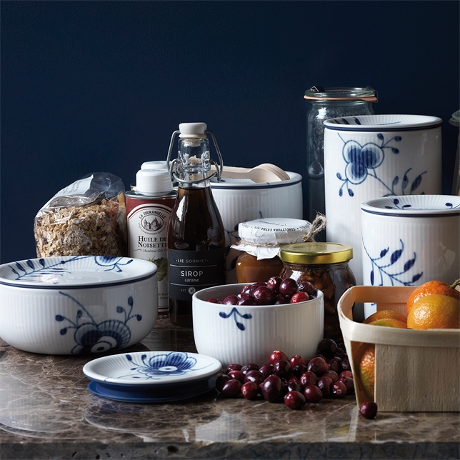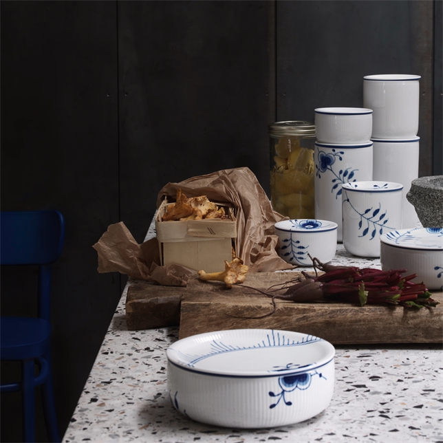 вещь для вашей кухни или любой другой комнаты дома. Нарисованный вручную синий узор дополняется поразительно синим силиконовым ободком, который делает банку герметичной. Blue Fluted Mega успокаивающе знаком и в то же время удивительно освежает. Рожденный из смелой реинтерпретации культового узора Blue Fluted Plain, Blue Fluted Mega очаровывает графическими и увеличенными участками оригинального узора, окрашенного мидиями. С момента своего создания в 2000 году Blue Fluted Mega превратилась в настоящую новую классику датского дизайна. Привлекательная коллекция красива сама по себе или в сочетании с ограниченным тиражом коллекции Mega Rose или любого другого королевского Копенгагенского ужина.