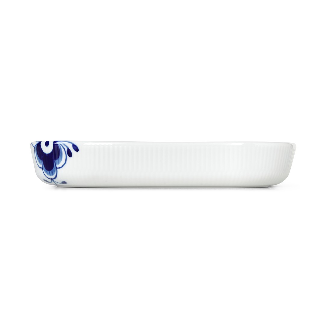 Квадратное жарочпрочное блюдо из новой линейки коллекции Blue Fluted Mega подойдет для запекания блюд в духовке и подачи их на стол.