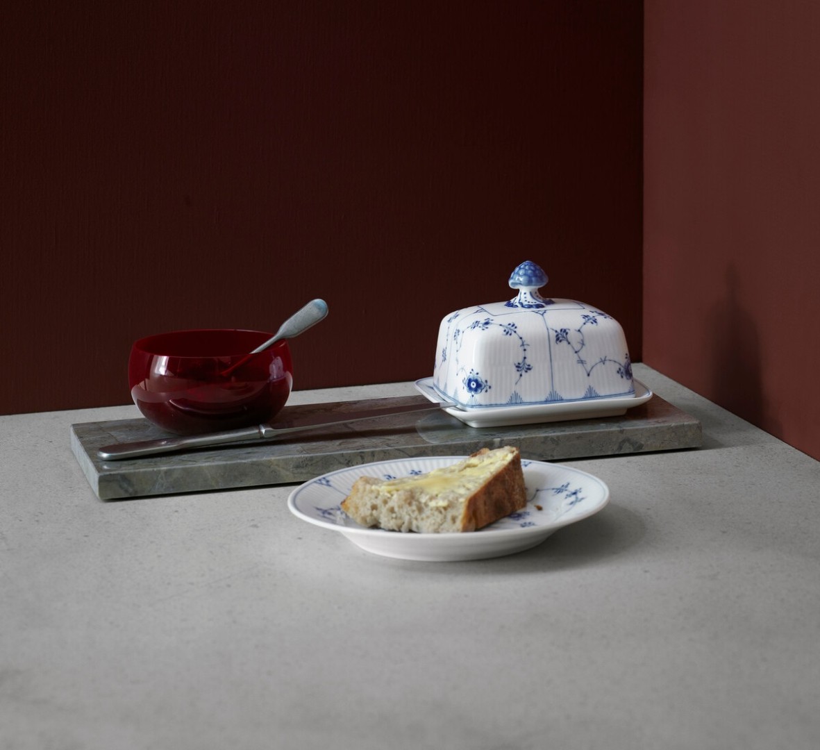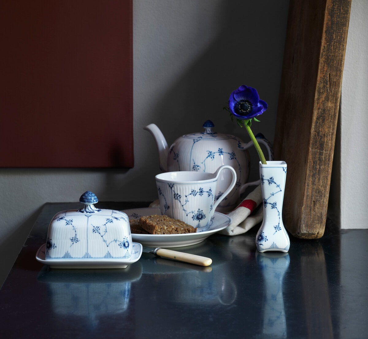 Одна из базовых коллекций датского фарфора, впоследствии многократно интерпретированная в других сериях. Создана в 1775 году, и в 1885-м переработанная архитектором и художественным руководителем Королевской мануфактуры, Анольдом Крогом.