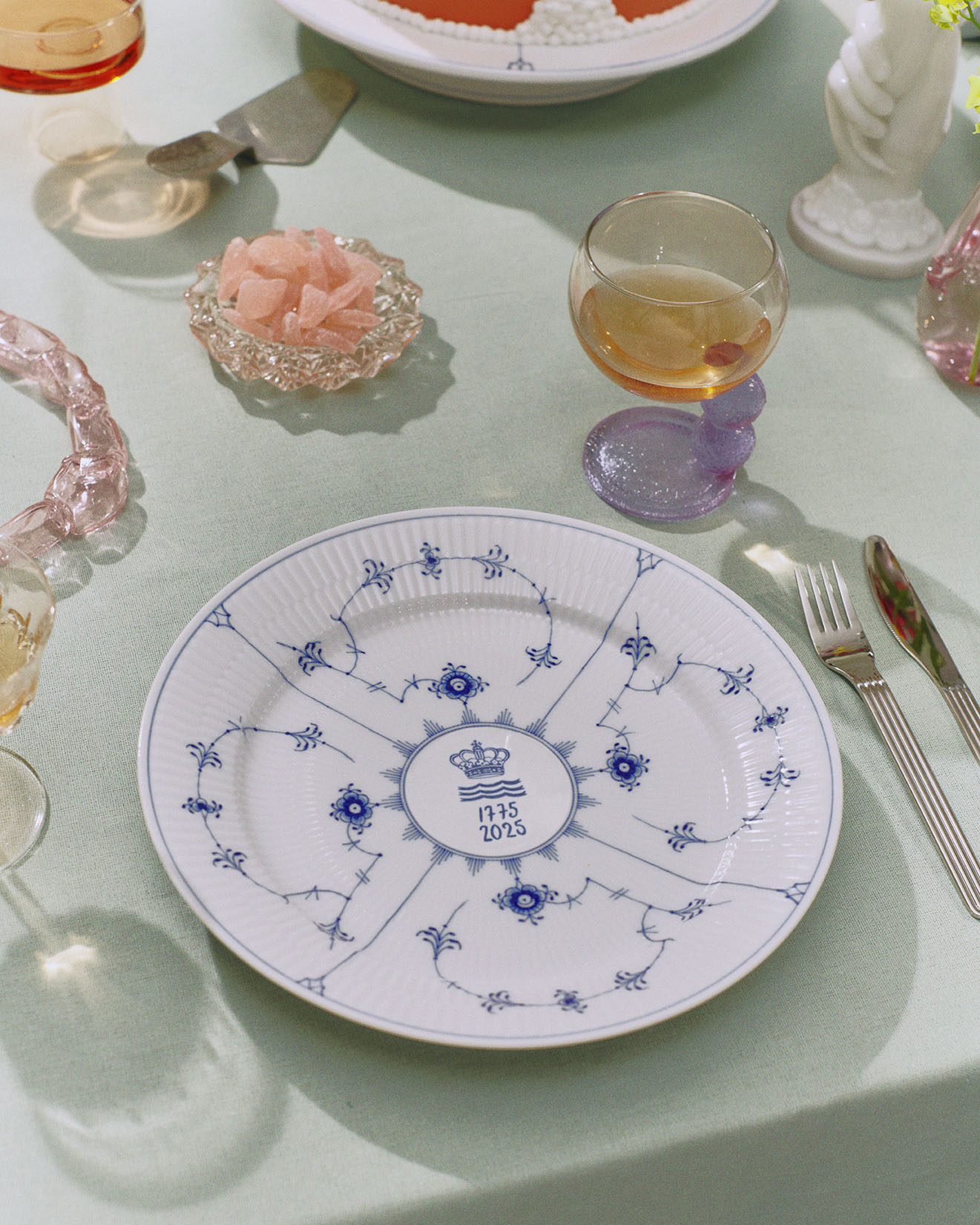 Узор № 1 – Blue Fluted Plain, который остается визитной карточкой бренда на протяжении многих лет. В честь этого знаменательного события классический мотив в центре тарелки был заменен элегантными юбилейными датами: 1775-2025.