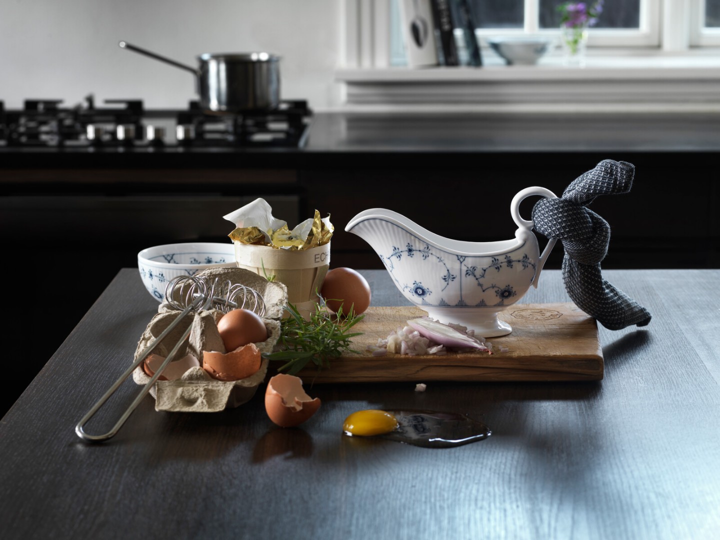 Одна из базовых коллекций датского фарфора, впоследствии многократно интерпретированная в других сериях. Создана в 1775 году, и в 1885-м переработанная архитектором и художественным руководителем Королевской мануфактуры, Анольдом Крогом.