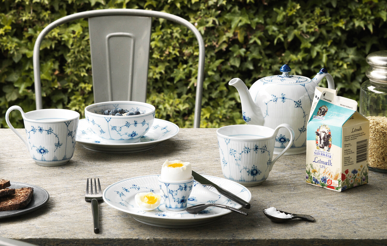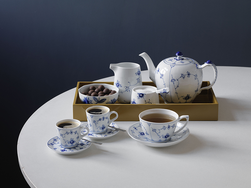Одна из базовых коллекций датского фарфора, впоследствии многократно интерпретированная в других сериях. Создана в 1775 году, и в 1885-м переработанная архитектором и художественным руководителем Королевской мануфактуры, Анольдом Крогом.