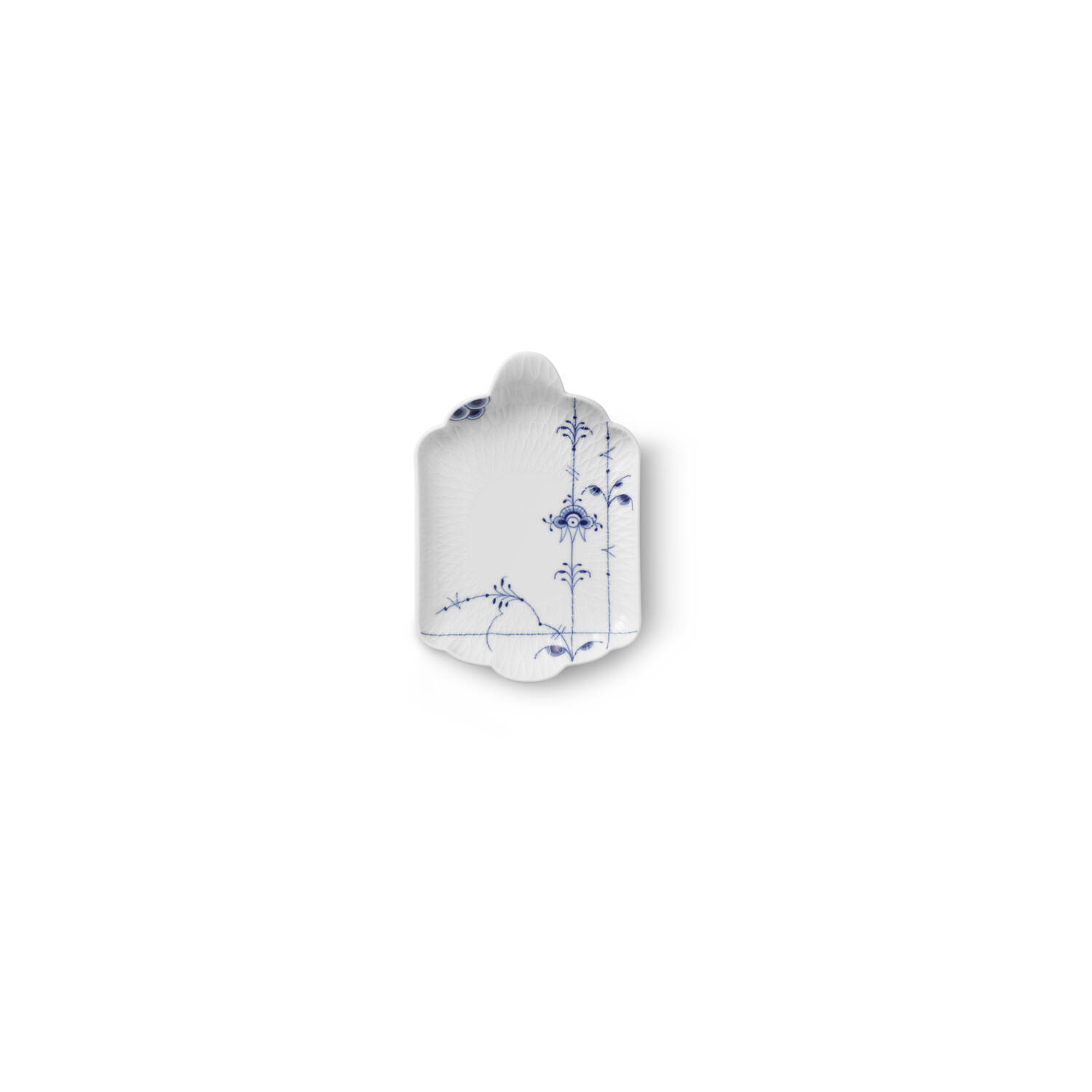 Уникальность изделия заключается в сочетании восточной формы и датского минимализма: вместо традиционных желобков поверхность украшена тактильным рельефом в виде ромбов. Ручная подглазурная роспись кобальтом и узнаваемый символ трех волн делают это блюдо статусным элементом сервировки, идеально подходящим для закусок, суши или десертов.