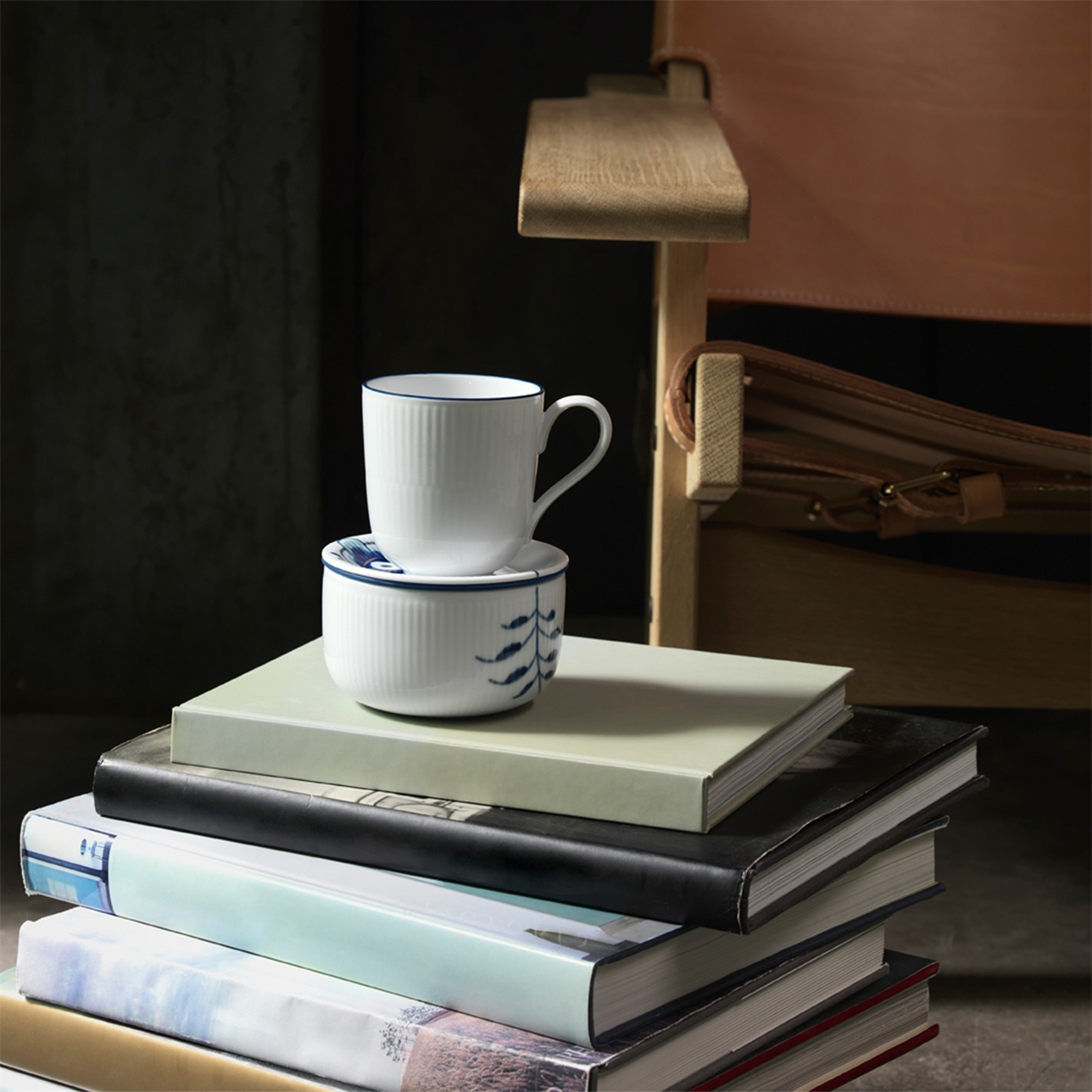 Blueline — это современный гимн скандинавскому минимализму. В центре внимания — безупречная белизна культовых каннелюр (желобков) Royal Copenhagen, подчеркнутая лишь одной тонкой синей линией, нанесенной вручную.