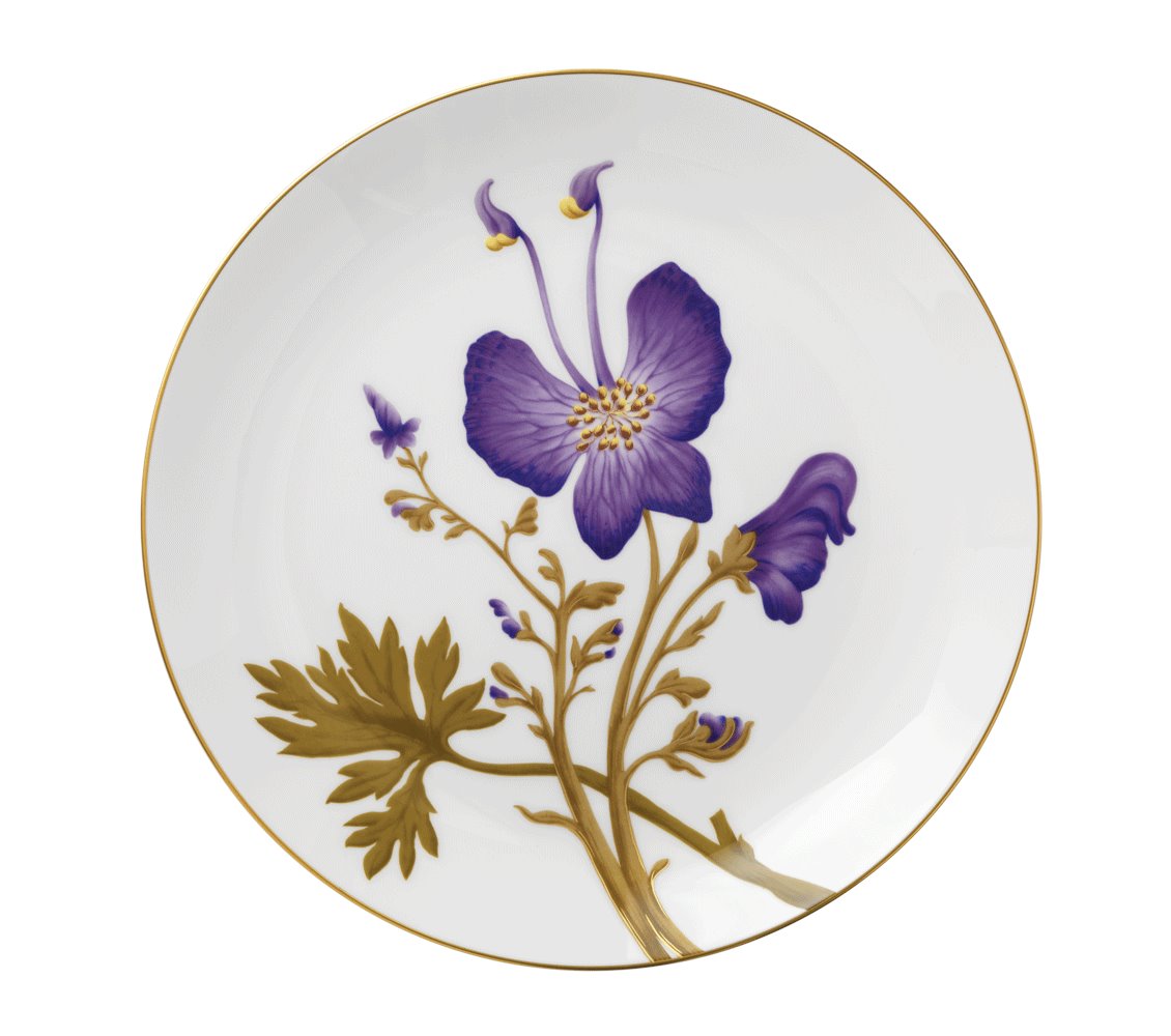 В основу декора легли яркие растительные сюжеты, центральным элементом которых является крупный цветок – лилия, фиалка, василек, орхидея и другие. Коллекция содержит все необходимое для сервировки обеденного или праздничного стола: чайные пары, мелкие и глубокие тарелки, миски, чайники, блюда разного размера и формы, другие элементы. Поверхность фарфоровых предметов ровная без рельефов.