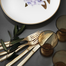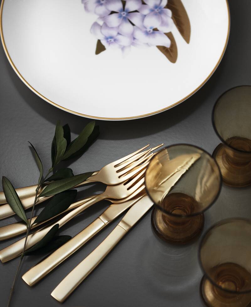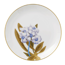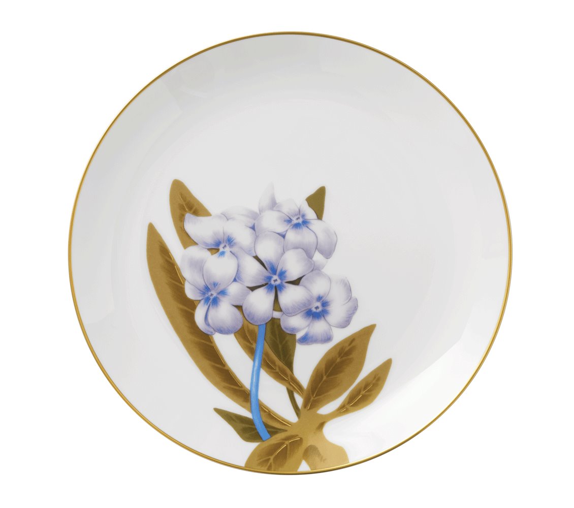 На этой тарелке рододендрон вырастает из середины тарелки, демонстрируя золотые листья и нежные лепестки в синих и сиреневых оттенках. Изящный флористический декор и золотой ободок — это нежная отсылка к культовой коллекции Flora Danica, привносящая в сервировку стола особую элегантность и утонченность.