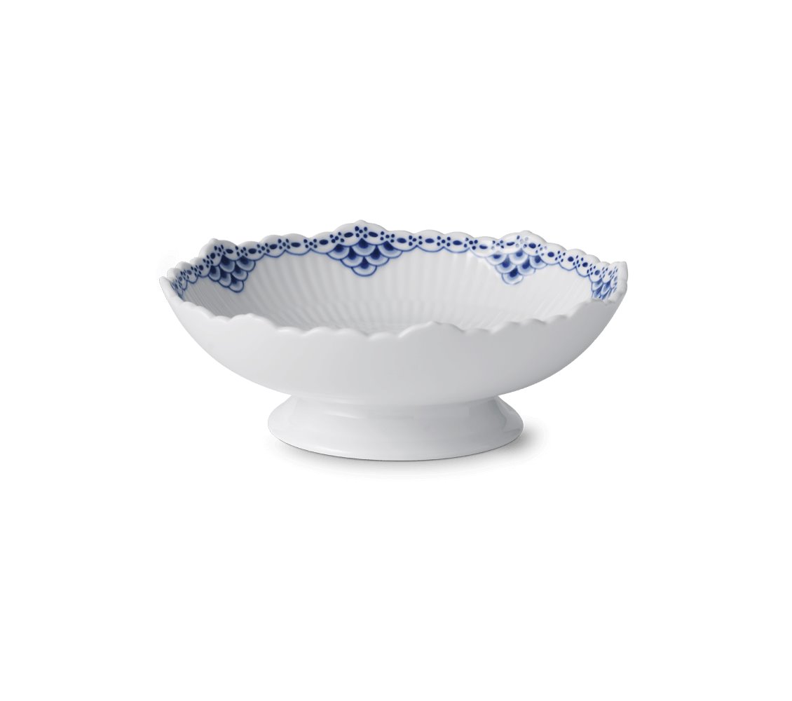 Придайте вашему интерьеру особую изысканность с миской Royal Copenhagen Princess на ножке, объему 420 мл. Эта утонченная миска, выполненная из высококачественного фарфора, украшена волнистым краем, подчеркивающим нежный узор из кружева и декора "рыбья чешуя", вручную расписанный в синих тонах.