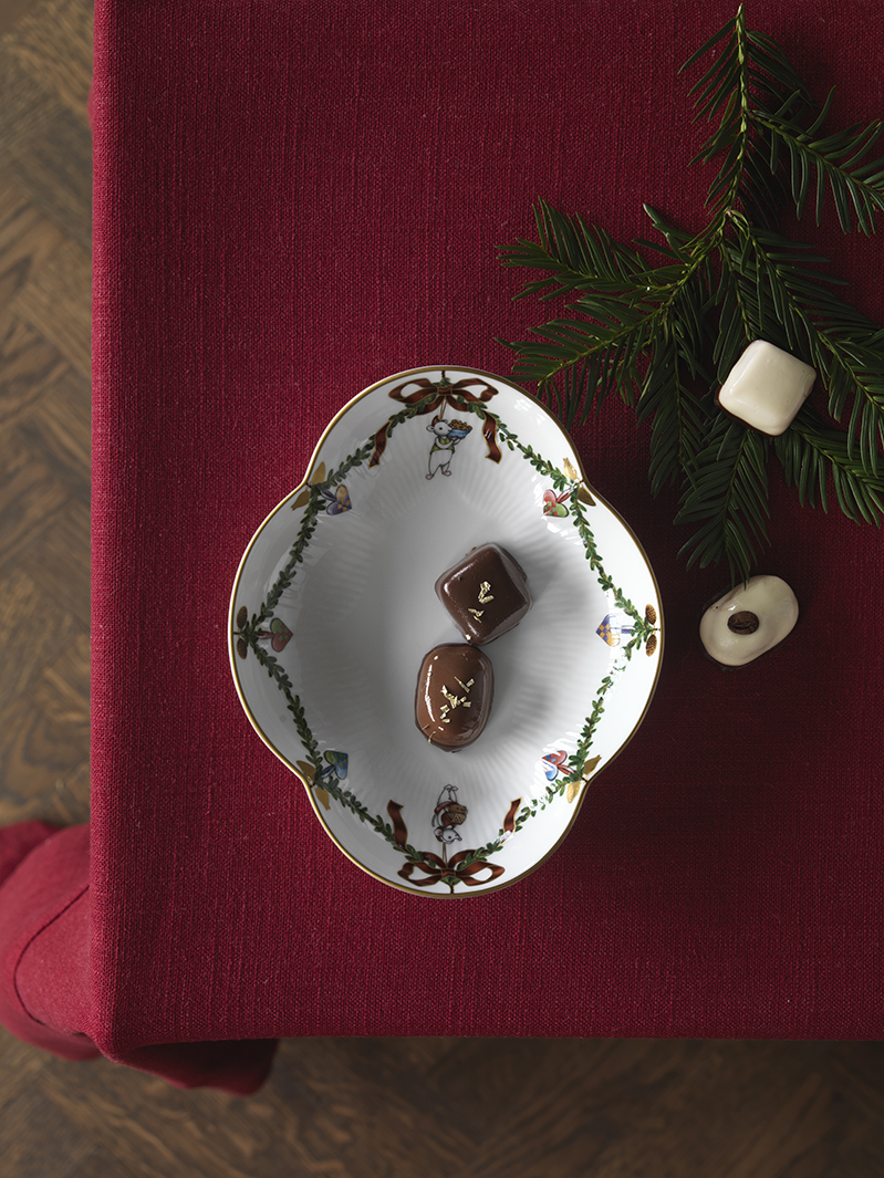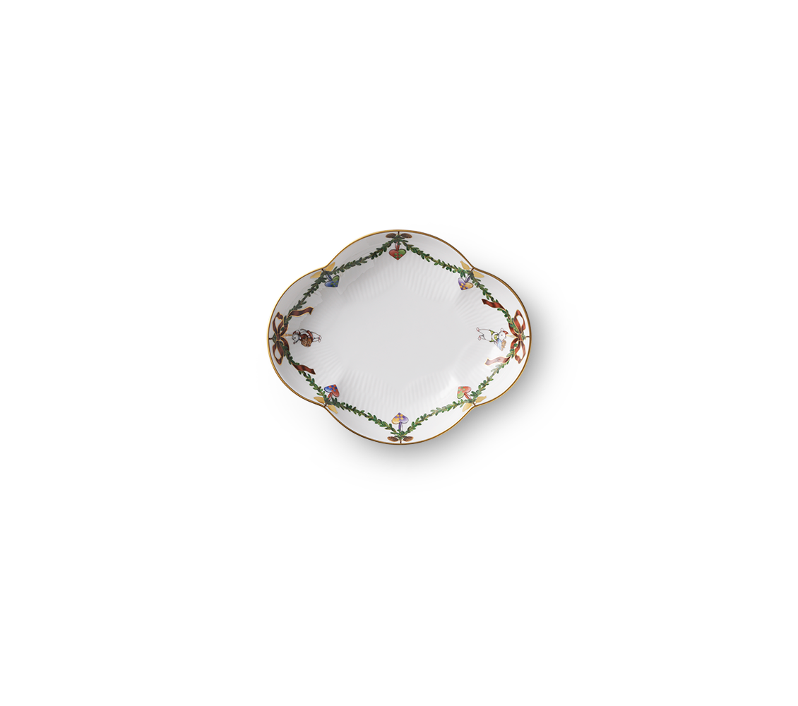 Блюдо Royal Copenhagen Star Fluted Christmas — это воплощение рождественского волшебства и праздничного уюта. Выполненное из изысканного костяного фарфора, это блюдо украшено яркими гирляндами из еловых веток, красными лентами, золотыми звездами и символичными рождественскими мотивами, создавая неповторимую атмосферу праздника.