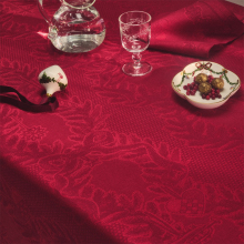 Изготовленная из смеси хлопка и льна, скатерть выполнена в красивом красном цвете и украшена жаккардовым узором, который передаёт дух праздничного сезона.