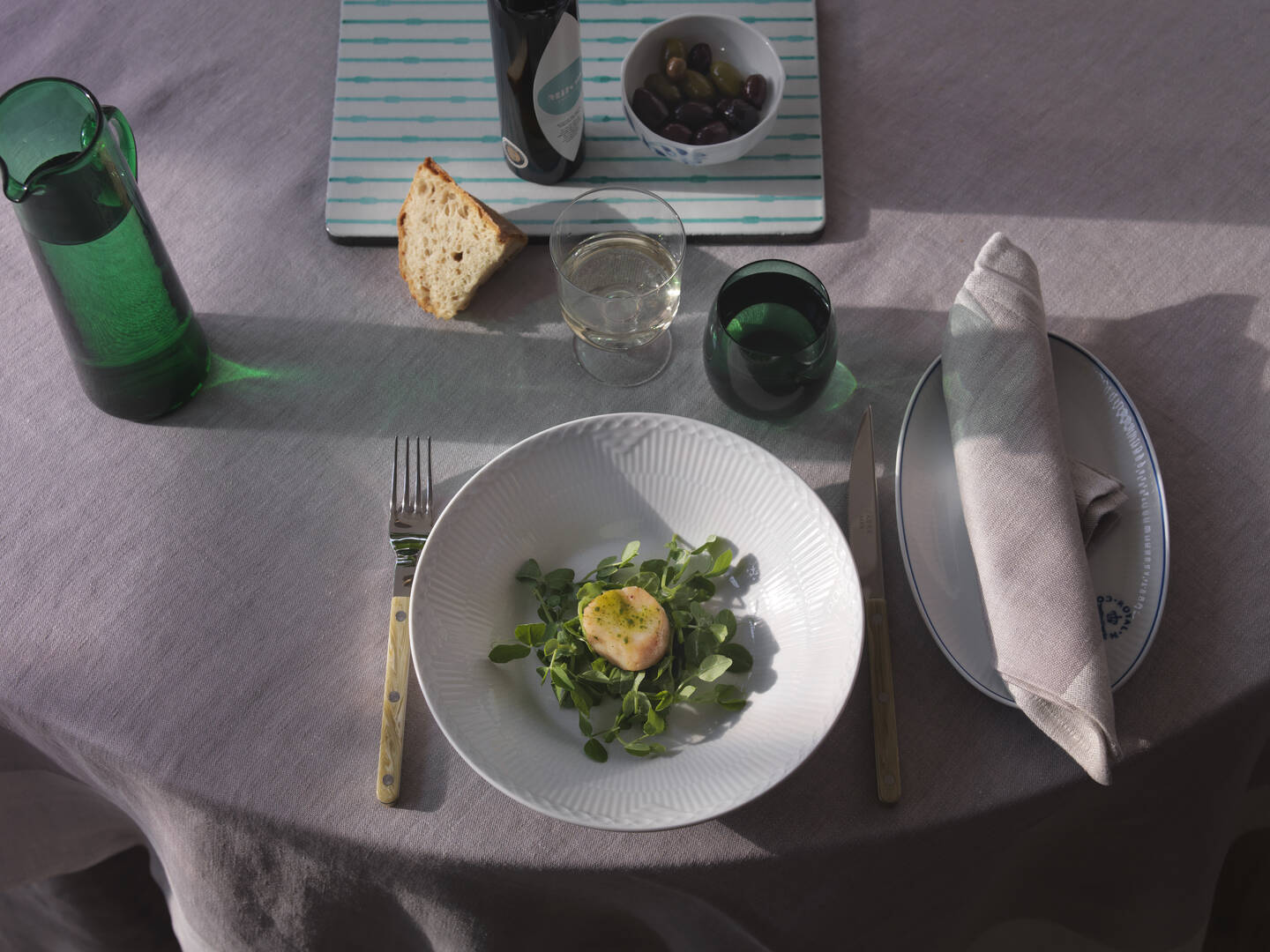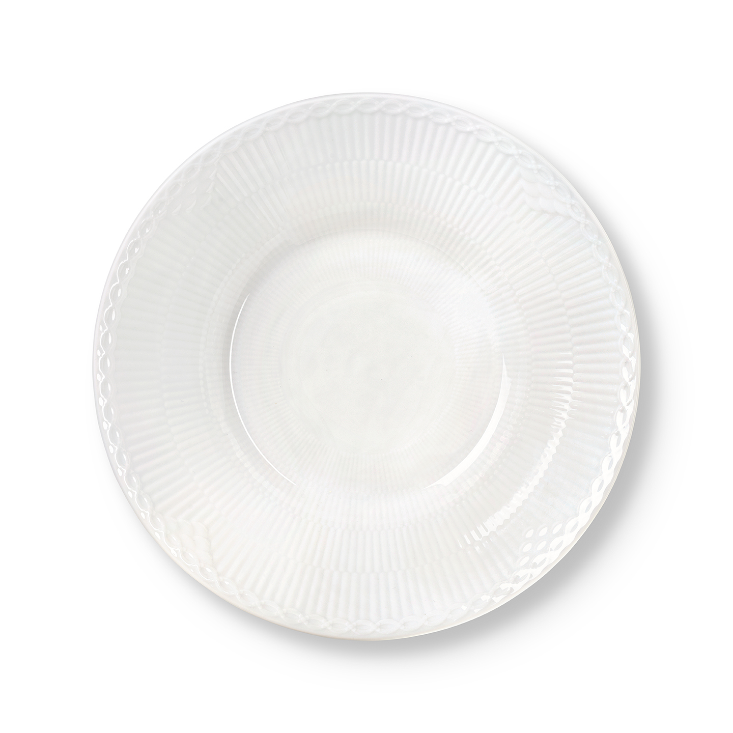 Белоснежный фарфор с рифленой структурой – это признак фирменного стиля, повторяющийся во всех коллекциях серии «Fluted». От коллекции White Fluted, сервиз Half Lace отличается изысканным кантом. Нежное ажурное кружево проходит тонкой линией вдоль среза посуды, украшая края чашек, тарелок и других предметов. На поверхностях отсутствует какая-либо роспись.