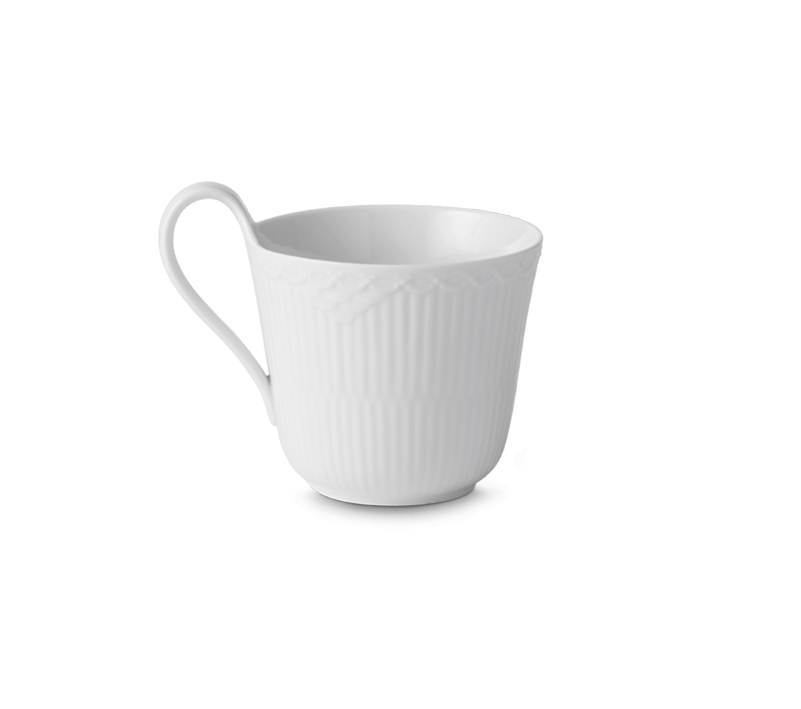 Белоснежный фарфор с рифленой структурой – это признак фирменного стиля, повторяющийся во всех коллекциях серии «Fluted». От коллекции White Fluted, сервиз Half Lace отличается изысканным кантом. Нежное ажурное кружево проходит тонкой линией вдоль среза посуды, украшая края чашек, тарелок и других предметов. На поверхностях отсутствует какая-либо роспись.