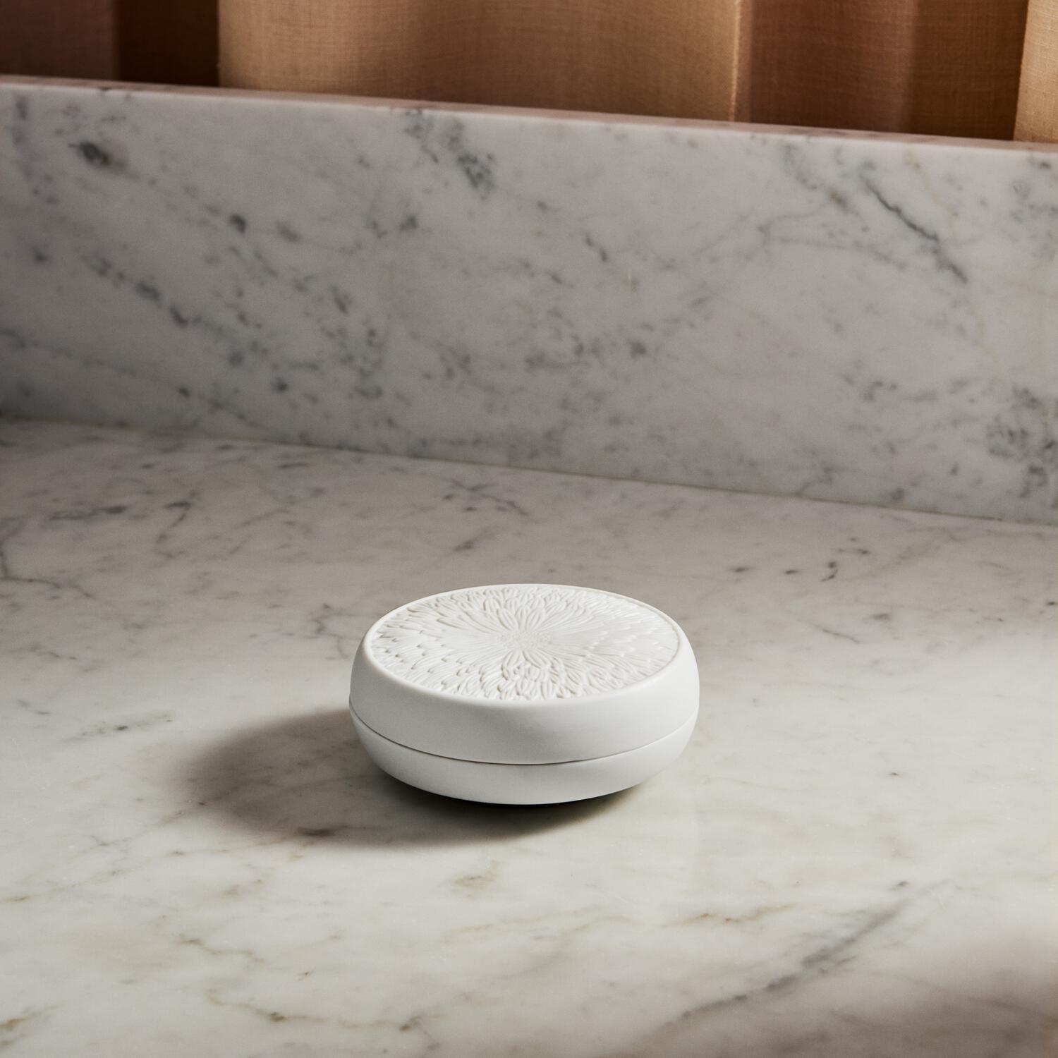 Представляем вашему вниманию эксклюзивную бонбоньерку Royal Copenhagen Daisy, выполненную из неглазурованного фарфора. Эта особенная серия является трогательным посвящением Её Величеству Королеве: рельефное изображение маргаритки на крышке – это не только любимый цветок Королевы, но и её личное прозвище.