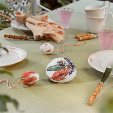 Данная коллекция - это изделия из тонкого фарфора, выполненные в виде подвесок, которые можно повесить на ветки, люстру или пасхальное дерево. Яйца украшены нежной росписью с мотивами цветов и птиц. Это прекрасный весенний сувенир, который можно купить в подарок или для собственной коллекции.